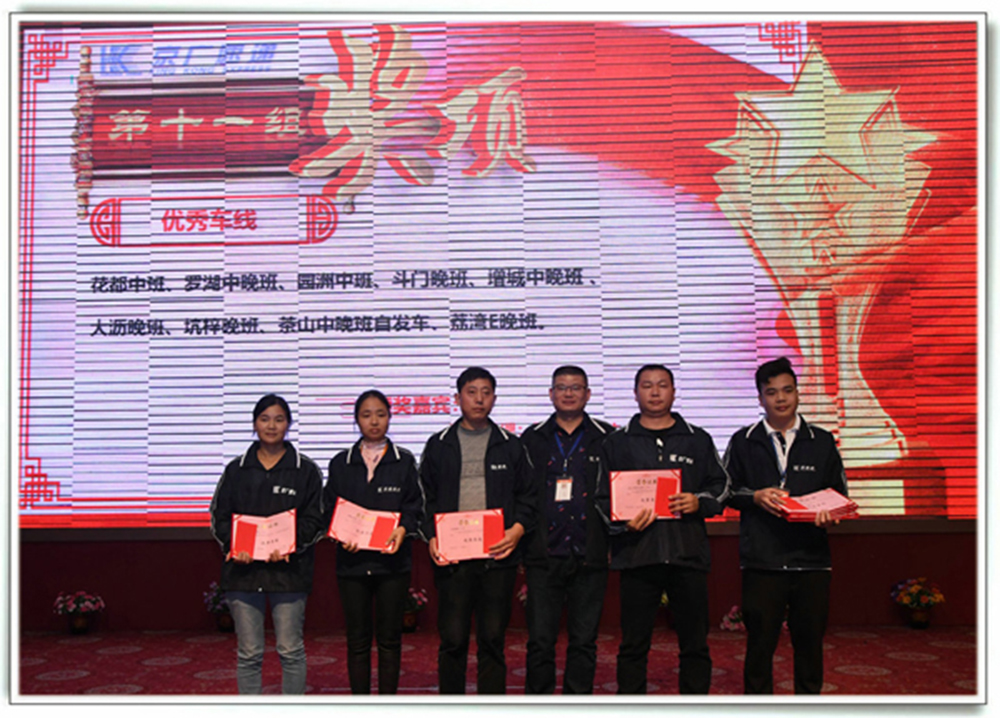 副總經理蔣松波、羅小明、張遠文為榮獲2018年度操作部優秀員工頒獎